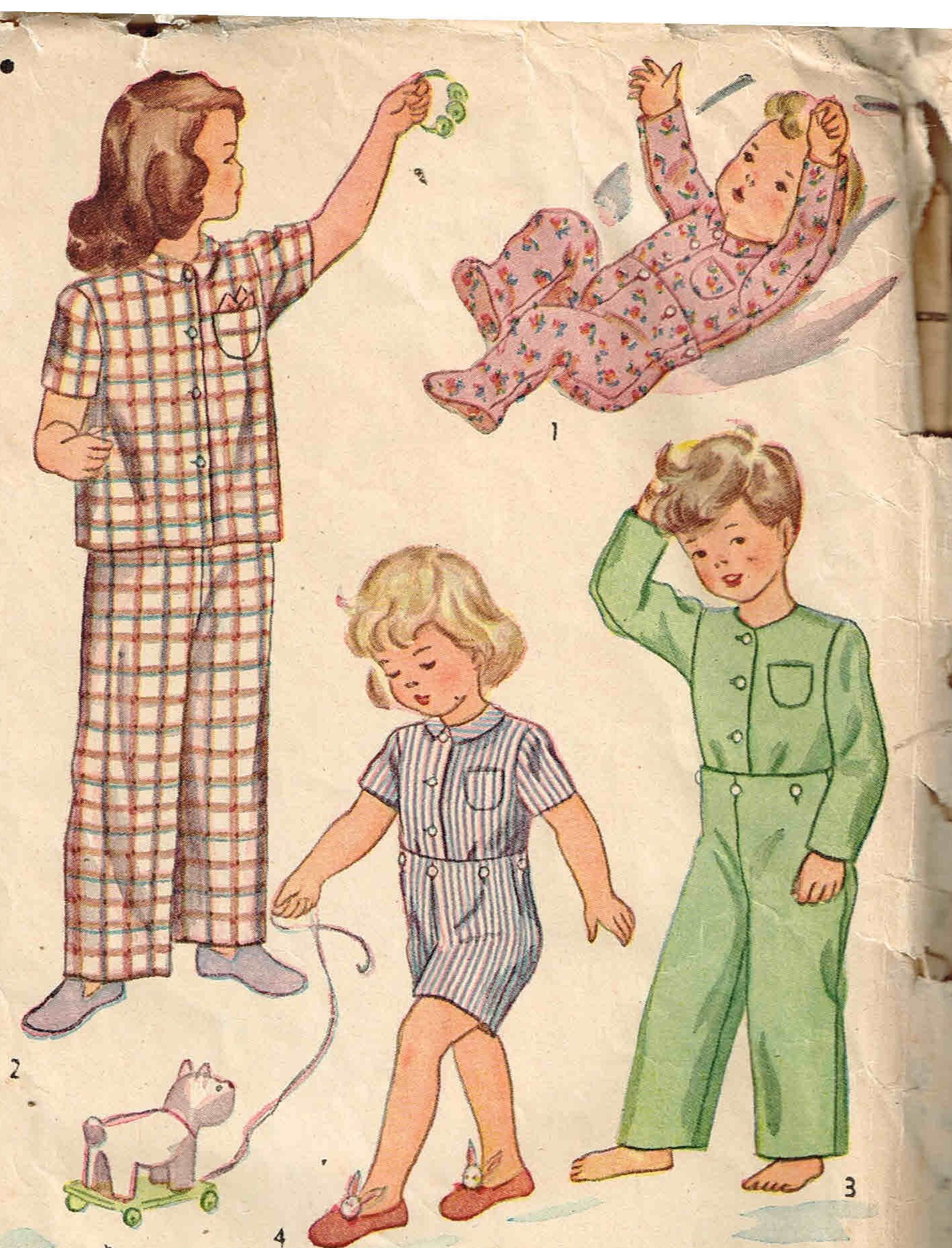 Vintage 1940s Children Pajamas Sewing Pattern Simplicity 2040 Etsy